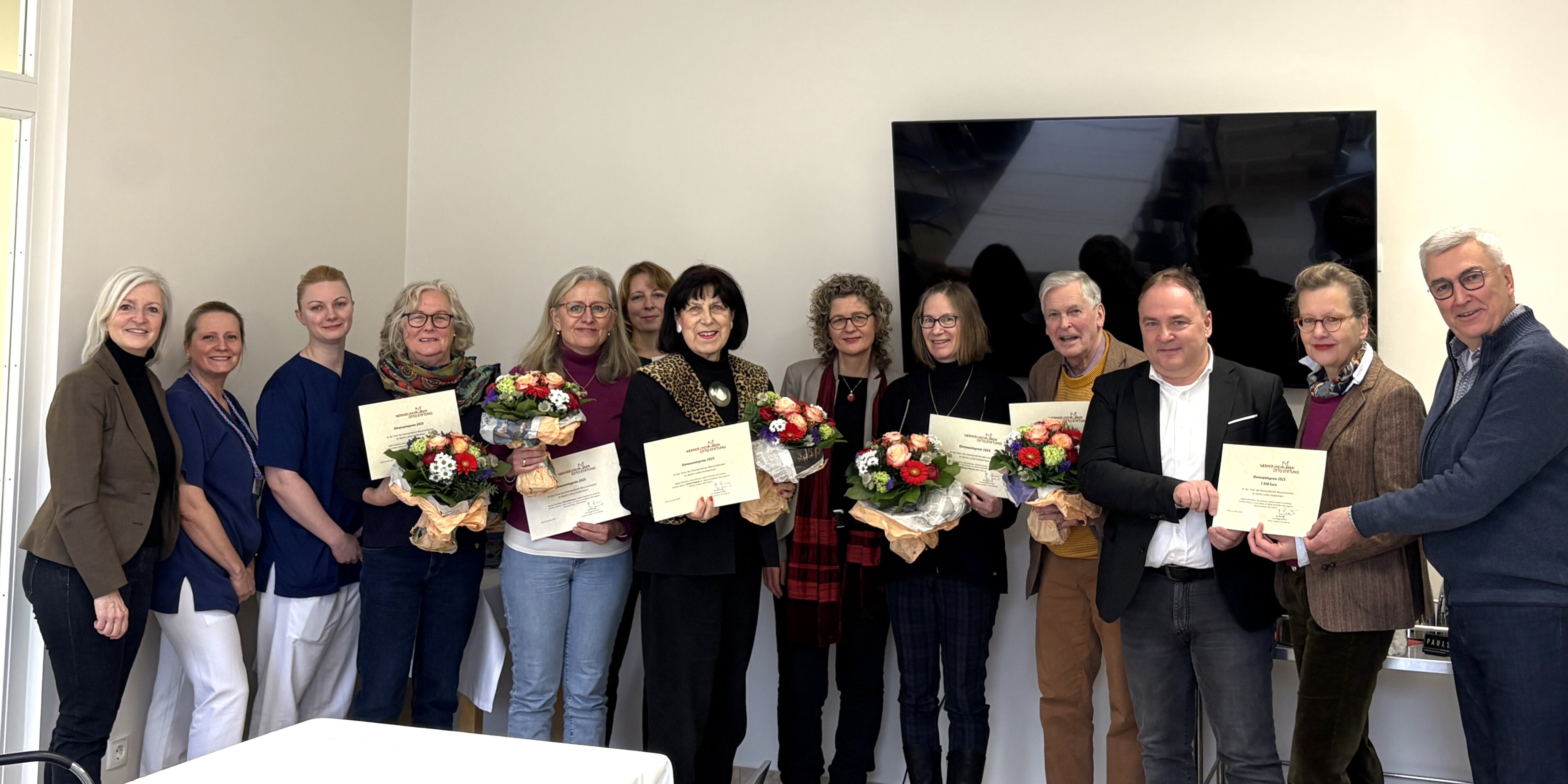 „Seit fast 100 Jahren engagieren sich Ehrenamtliche im Martin Luther Krankenhaus. An diese Tradition anknüpfend, besuchen heute Ehrenamtliche im Besuchsdienst regelmäßig Patient*innen oder unterstützen die Gottesdienste im Krankenhaus. Neben dem Krankenhausteam geben die Ehrenamtlichen besonderen Halt für Menschen, die sich allein und verloren im Krankenhaus fühlen,“ so Dr. Karin Barnard, die zusammen mit ihren drei Kuratoriumskolleg*innen der Werner und Maren Otto Stiftung die Ehrenamtlichen des Martin Luther Krankenhauses für den Ehrenamtspreis 2025 ausgewählt hat.