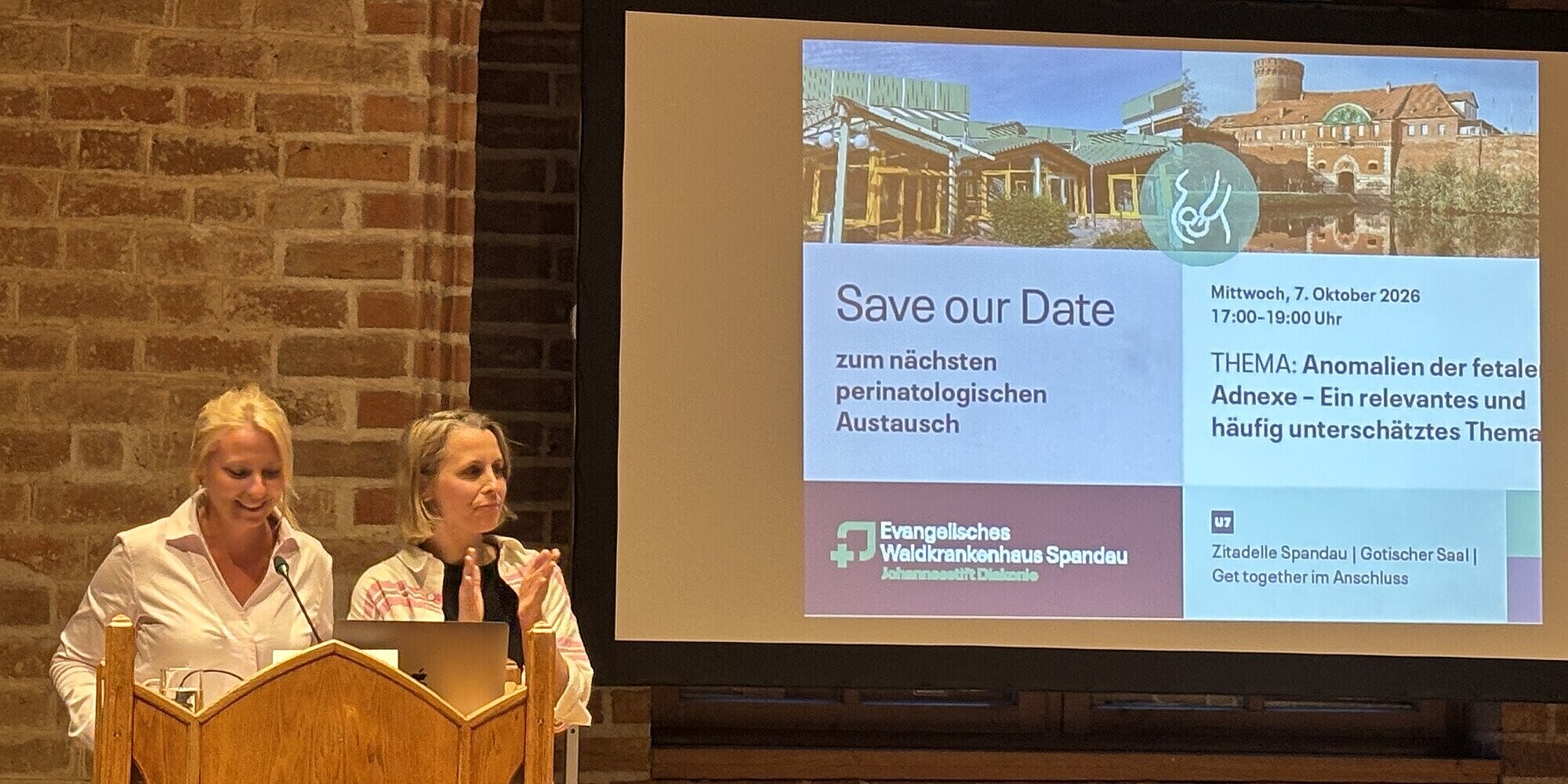 Am 15. April 2026 fand im historischen Ambiente der Zitadelle Spandau der vierte perinatologische Austausch des Evangelischen Waldkrankenhauses Spandau statt. Fachkolleg*innen und Spezialist*innen aus der Geburtshilfe und Neonatologie trafen sich zu einem spannenden und fachlich hochinteressanten Austausch rund um das Thema FGR. Die Veranstaltung bot erneut eine Plattform für fundierte Vorträge, angeregte Diskussionen und einen intensiven interdisziplinären Dialog.
